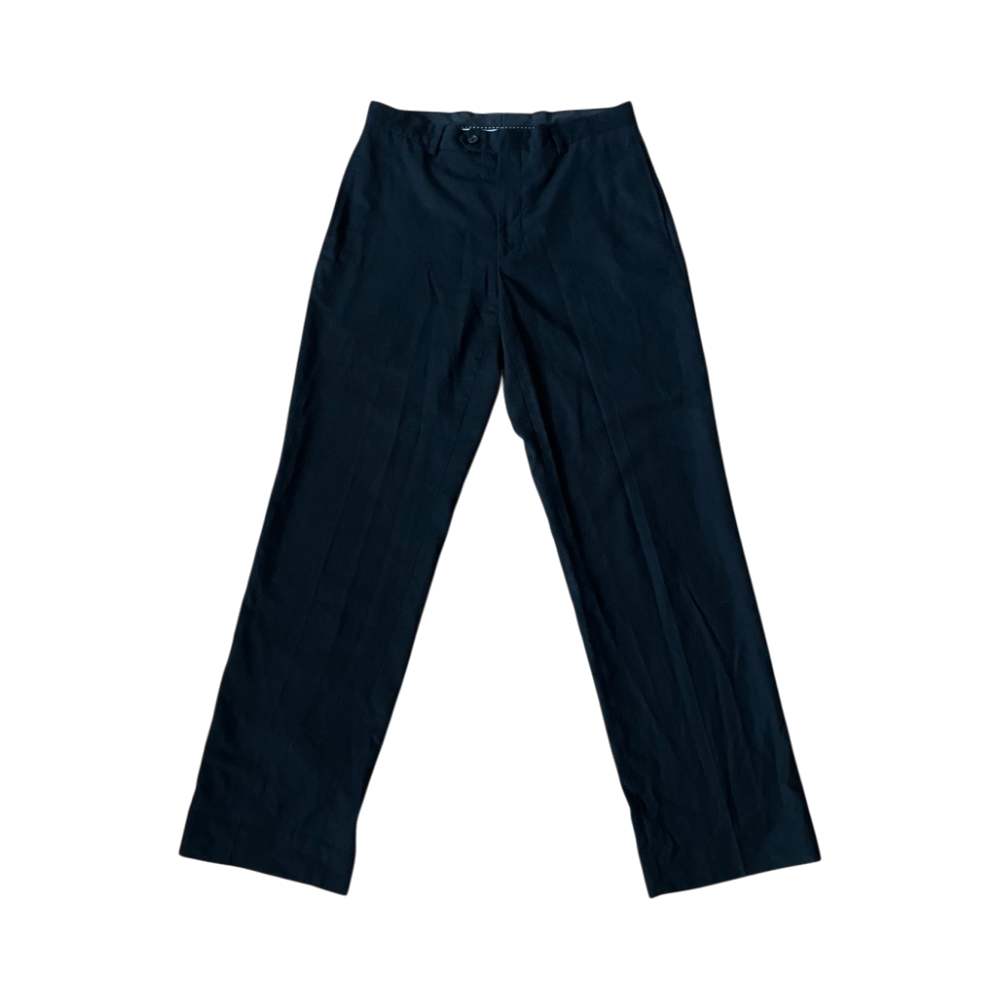 Classic black tailored trousers, slim formal style. Size 30 x 32. Polyester and rayon.
