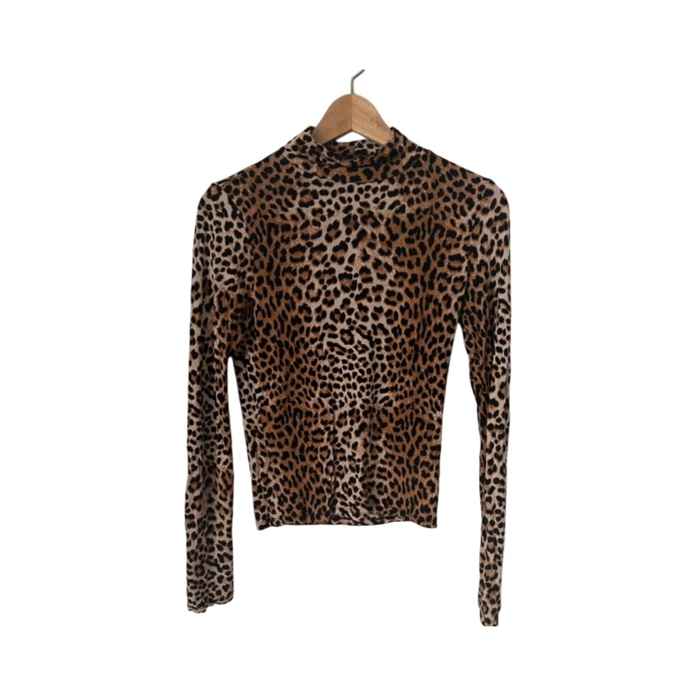 Pitkähihainen leopardikuosinen poolopaita, rento ja joustava.
