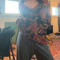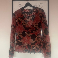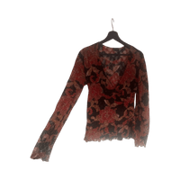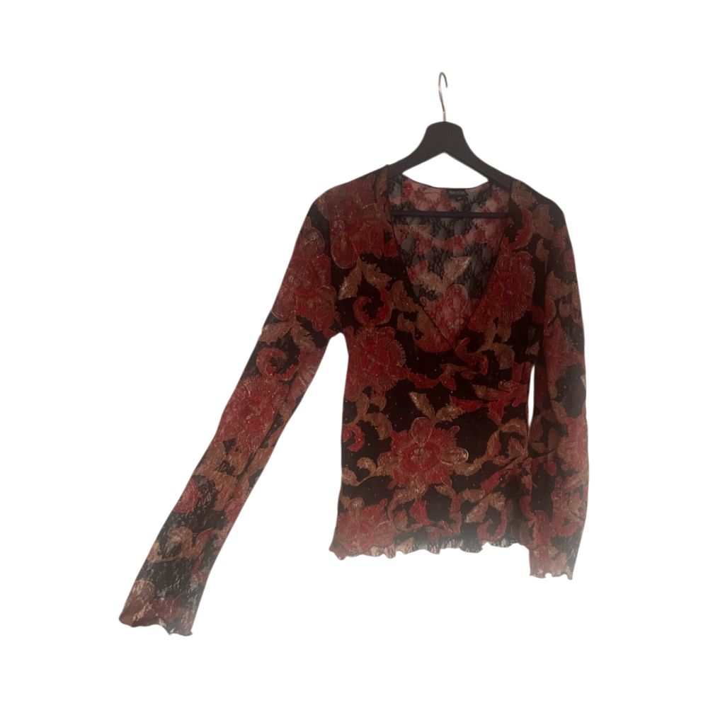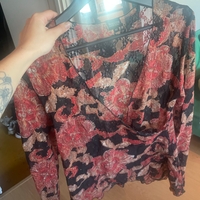 V-kaula-aukko, pitkähihoinen pitsi kukkapusero.