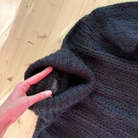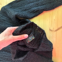 Kookaïn musta neule mohairsekoitetta 💜 Ei kokolappua mutta hyvä n S koolle. Harvaa neulosta eli näkyy jonkin verran läpi. Olka-helma n 56 ja kainalo-kainalo n 55 #mohair #knit #vintage #rollneck #polo #90s