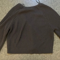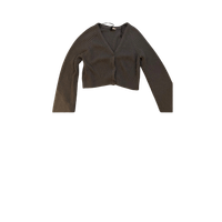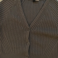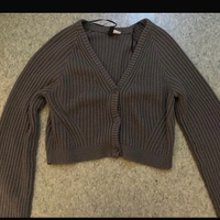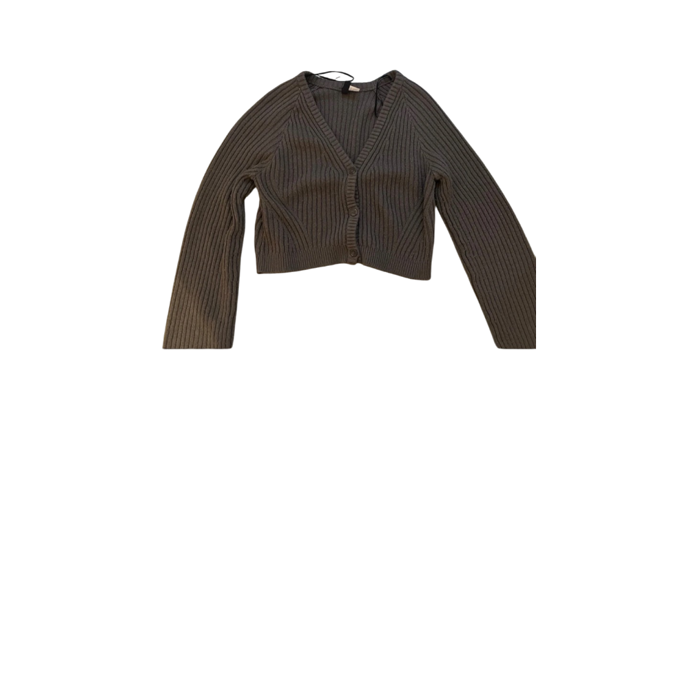 Grey ribbed V-neck cropped button cardigan.