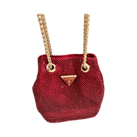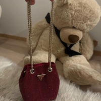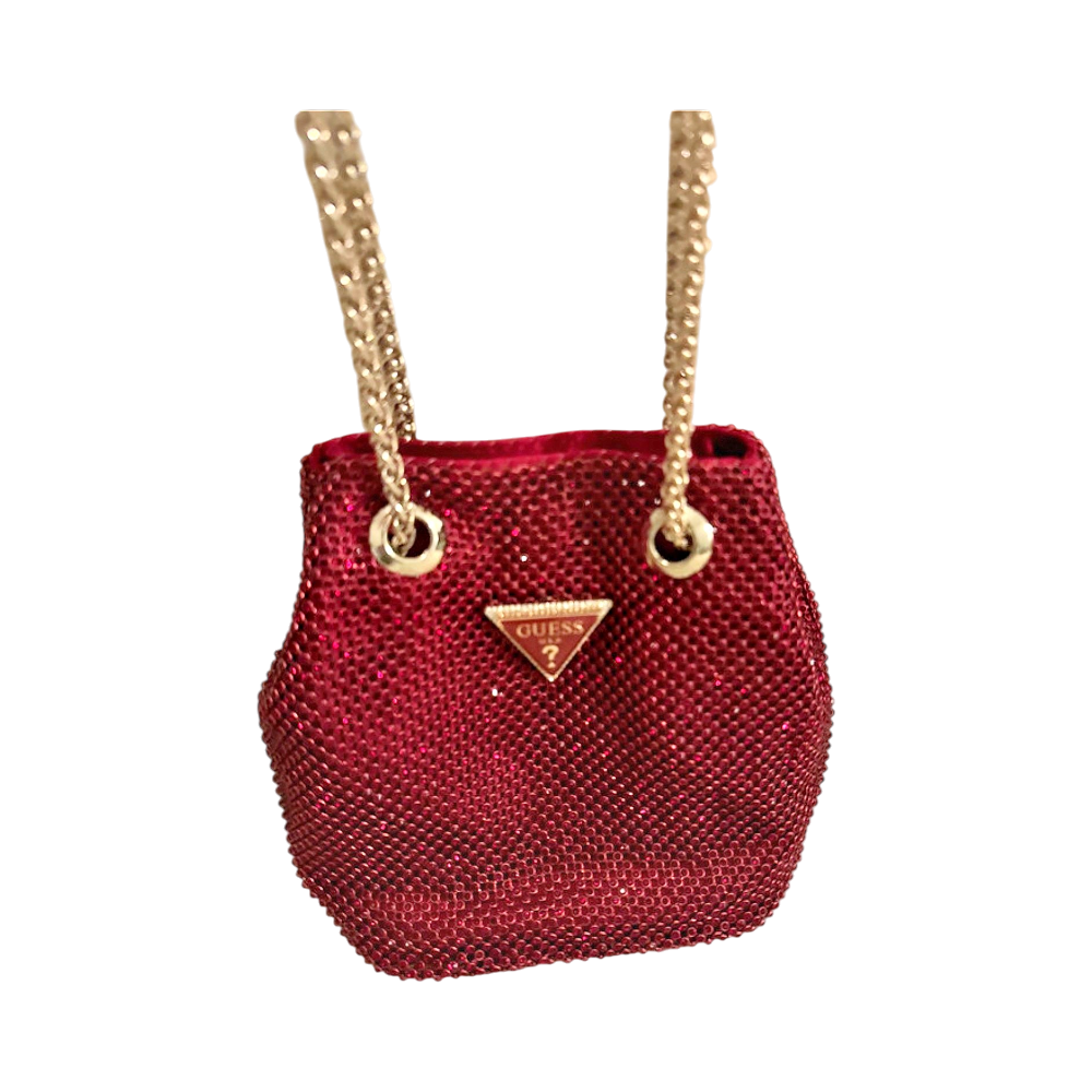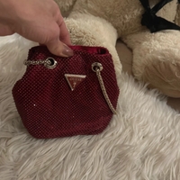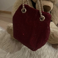 Kaunis punainen käsilaukku, koristeltu paljeteilla.