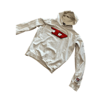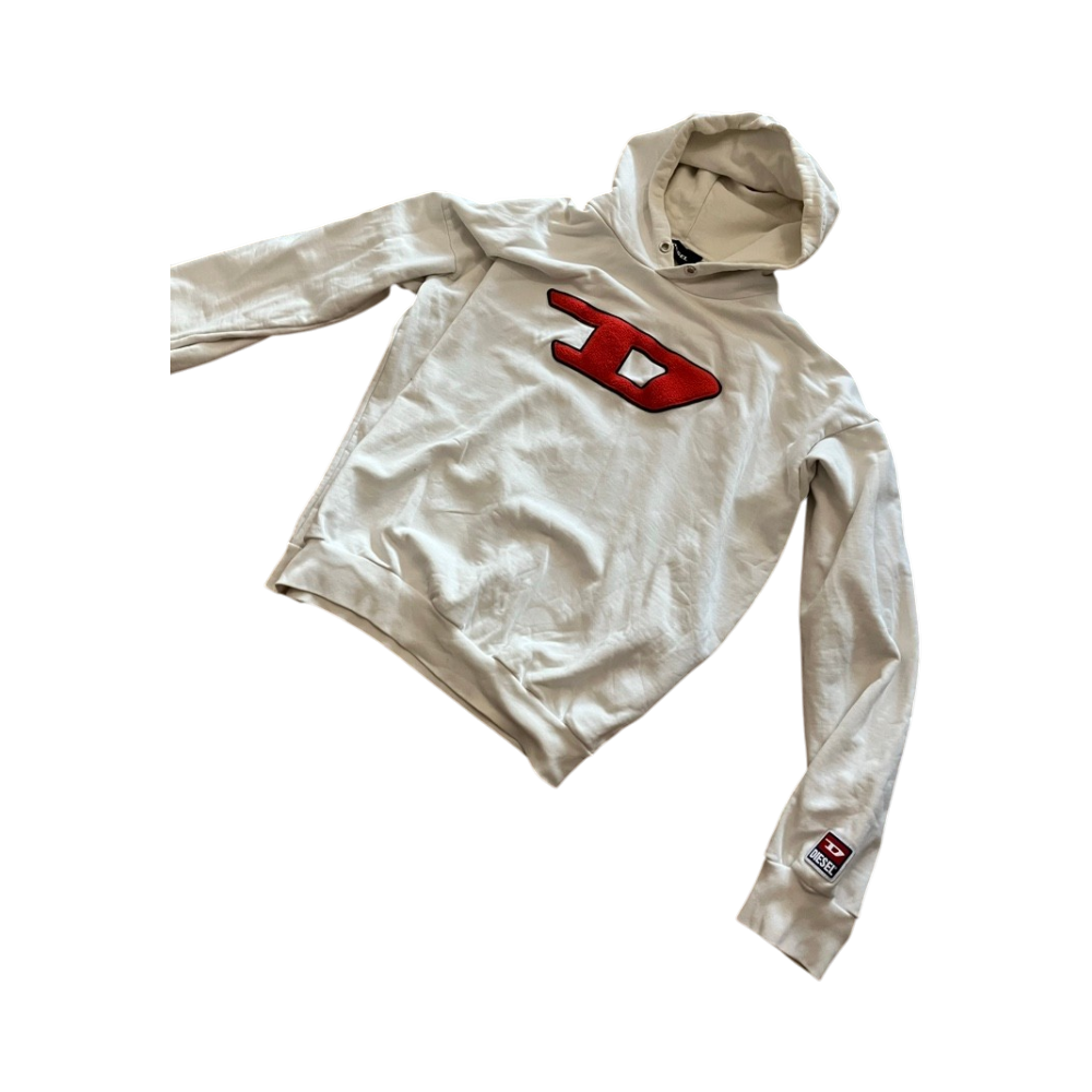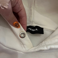 valkoinen dieselin huppari koossa L. erittäin hyvässä kunnossa mutta kauluksessa pientä tummentumaa ja kulumaa. muutoin siisti, ei nukkaa ei tahroja🥰