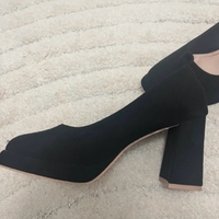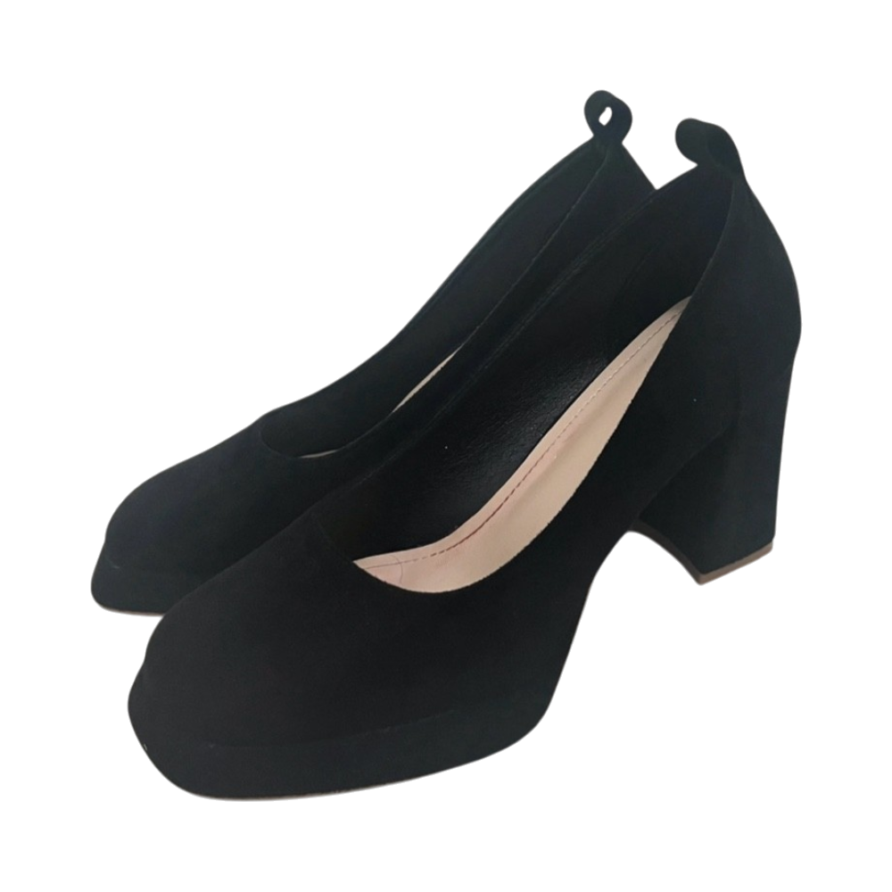 Black suede platform block heel pumps, size EU 40.
