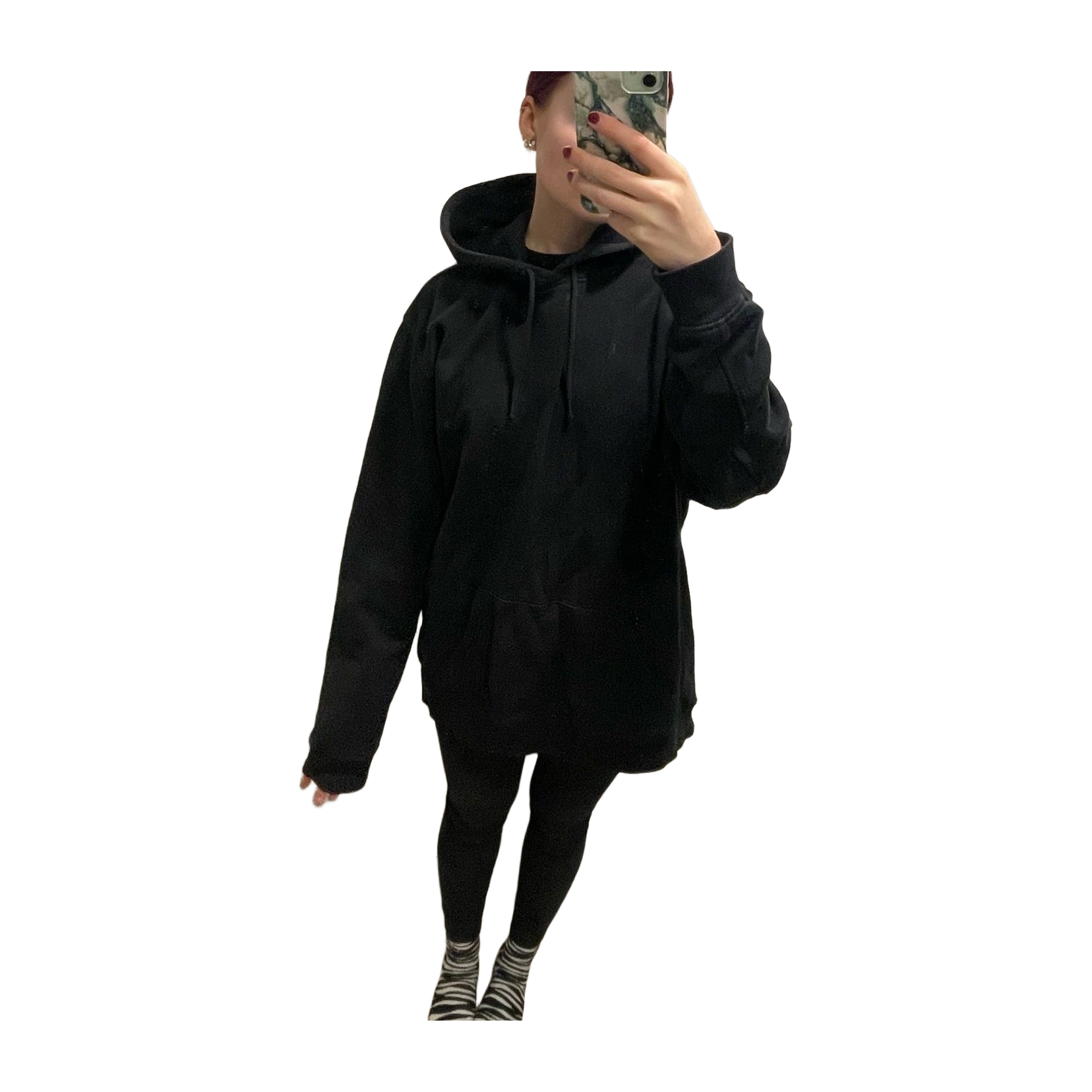 Musta huppari koossa L. Käytön jälkiä löytyy, näkyy kuvista.