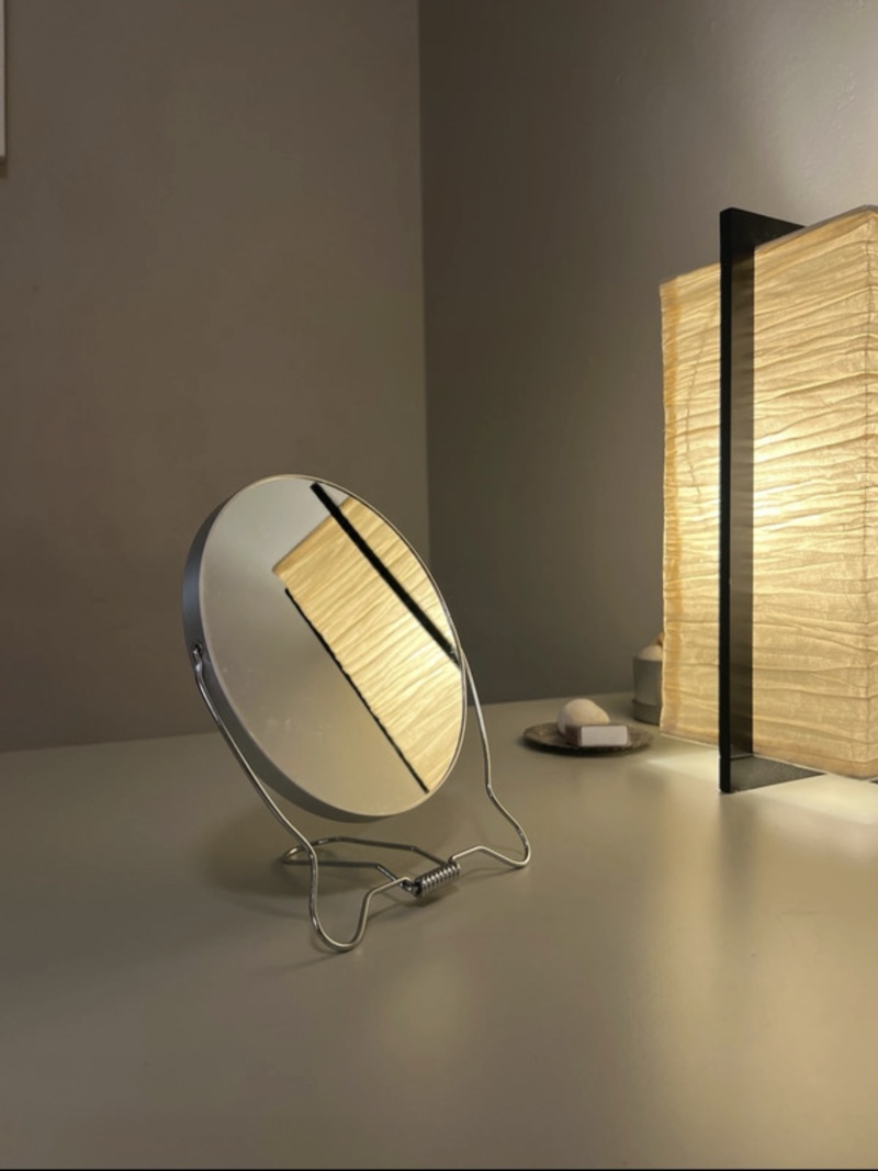 Small tablesize mirror, good for doing your makeup etc. Two-sided, normal and zoomed up!