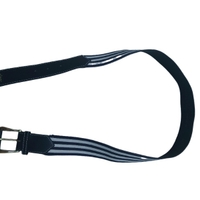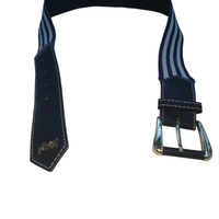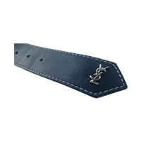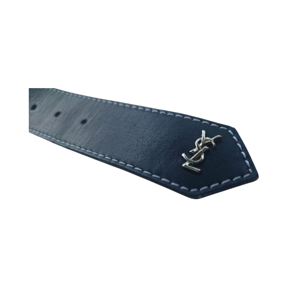 Vintage YSL-vyö, joka on nahkaa ja päällystetty kankaalla päältä. Se kankainen puoli on siis etupuoli. Käytön jäljet on minimaaliset