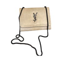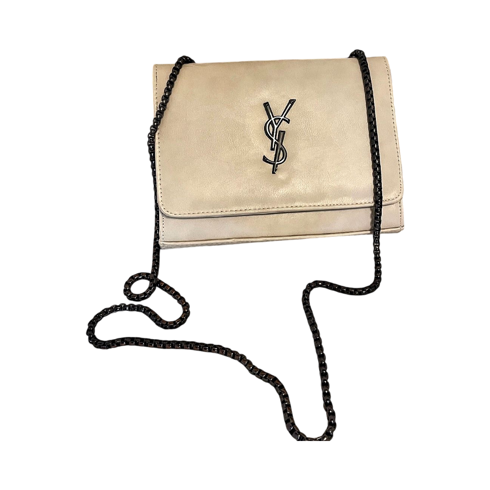 Hyväkuntoinen beige olkalaukku. Nappikiinnitys ja sisäpuolella vetoketjullinen tasku. Mitat näkyy kuvissa