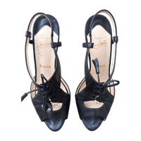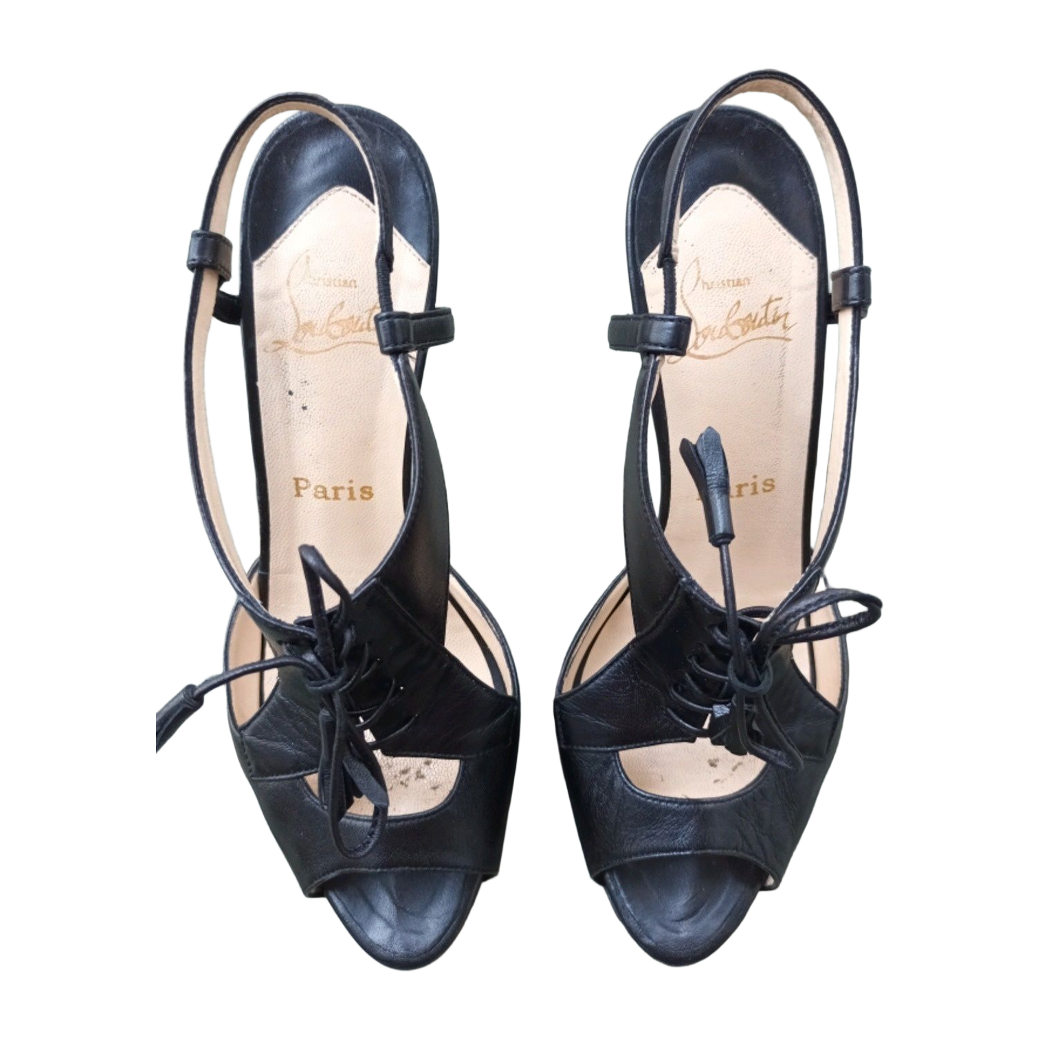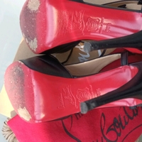 Louboutinin Sometimes Lace up- korkkarit. Luonnollista kulumaa punaisessa pohjassa, väri kuluu melko nopeasti. Korkojen alaosassa pientä jälkeä. Käyttöön nämä pienet jutut eivät vaikuta mitenkään ja huomioin nämä myös hinnassa. Ihanan pehmeää nahkaa ja mukavat jalassa. Koko 38,5 on normaali kengänkokoni, mutta nämä ovat itselleni hitusen liian naftit, siksi myyntiin. Mukaan boxi + dustbag.