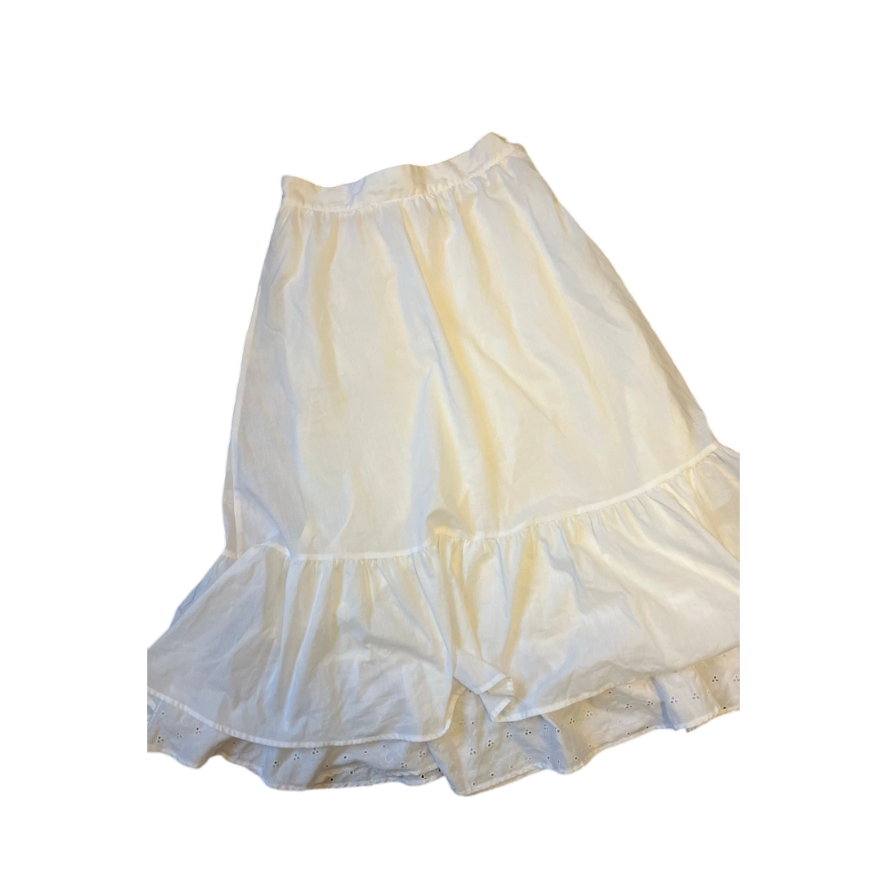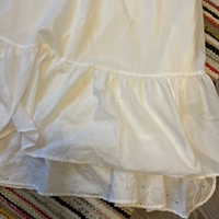 Upea Suomessa valmistettu maxihame, pitsikoristeinen alushame, helma näkyy kauniisti. Koko 38, pituus noin 83cm ja vyötärönympärys noin 70cm. Siistissä kunnossa