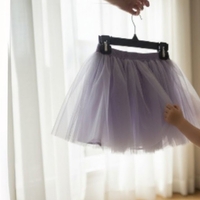 Lyhyt kerroksellinen tyllihame, kimaltava joustonauha vyötäröllä.