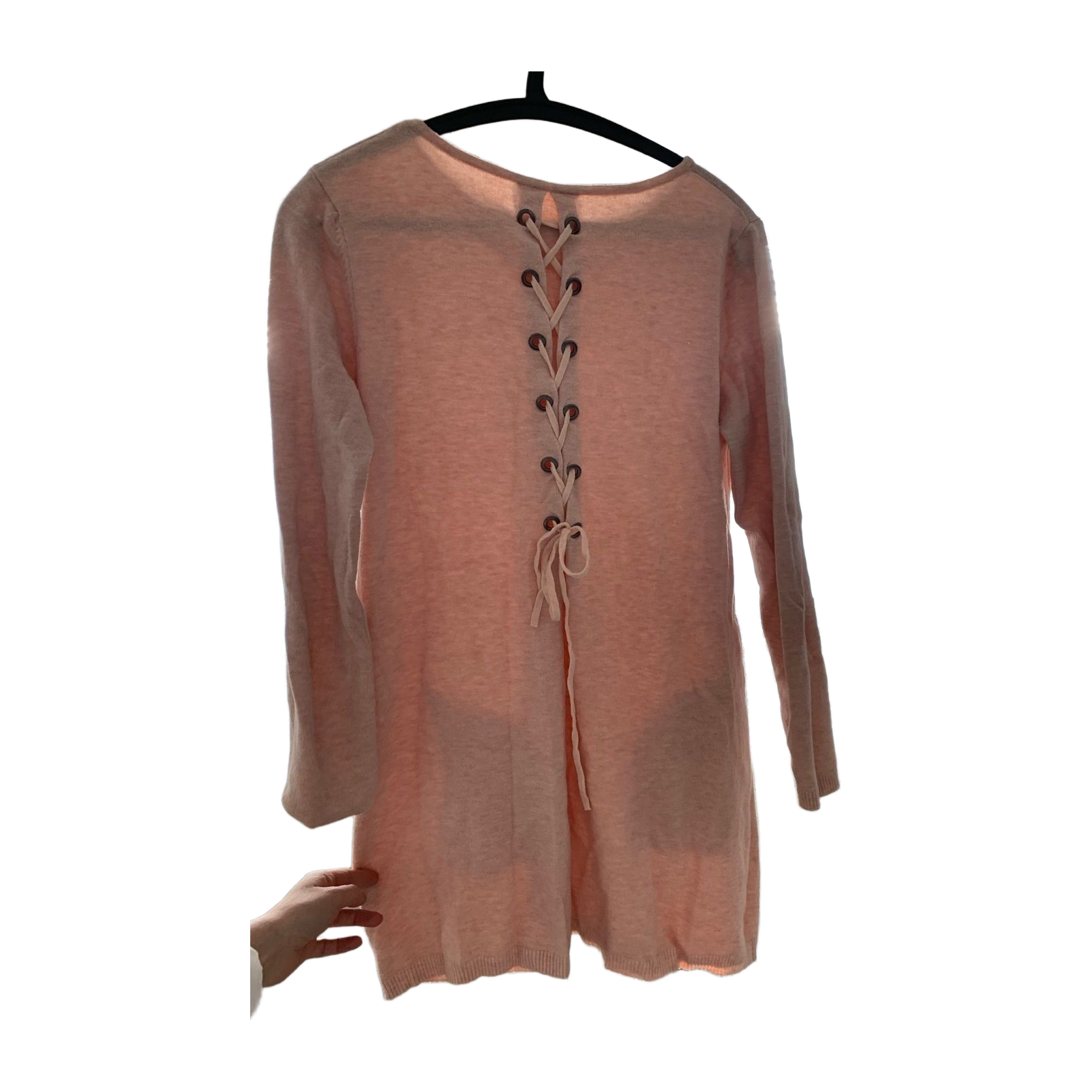 Vaalean roosa/puuteriroosa pehmeä neule, selässä narut. Taskut sivuissa. Käytetty pari kertaa.