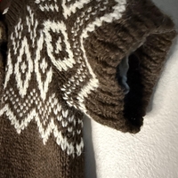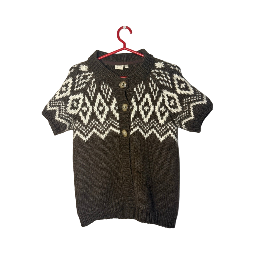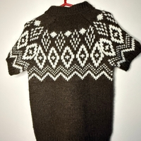 Thick knit short-sleeve sweater with Nordic pattern, cozy fit.