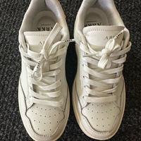 Valkoiset nahka tennarit, vaaleanpunaisilla yksityiskohdilla. Käytössä olleet max 10x. Pieniä jälkiä näkee jos läheltä oikein katsoo, mutta käytännössä erittäin hyvässä kunnossa.