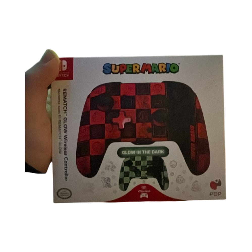 Super Mario -teemainen glow wireless -ohjain, uusi paketissa.