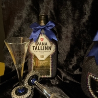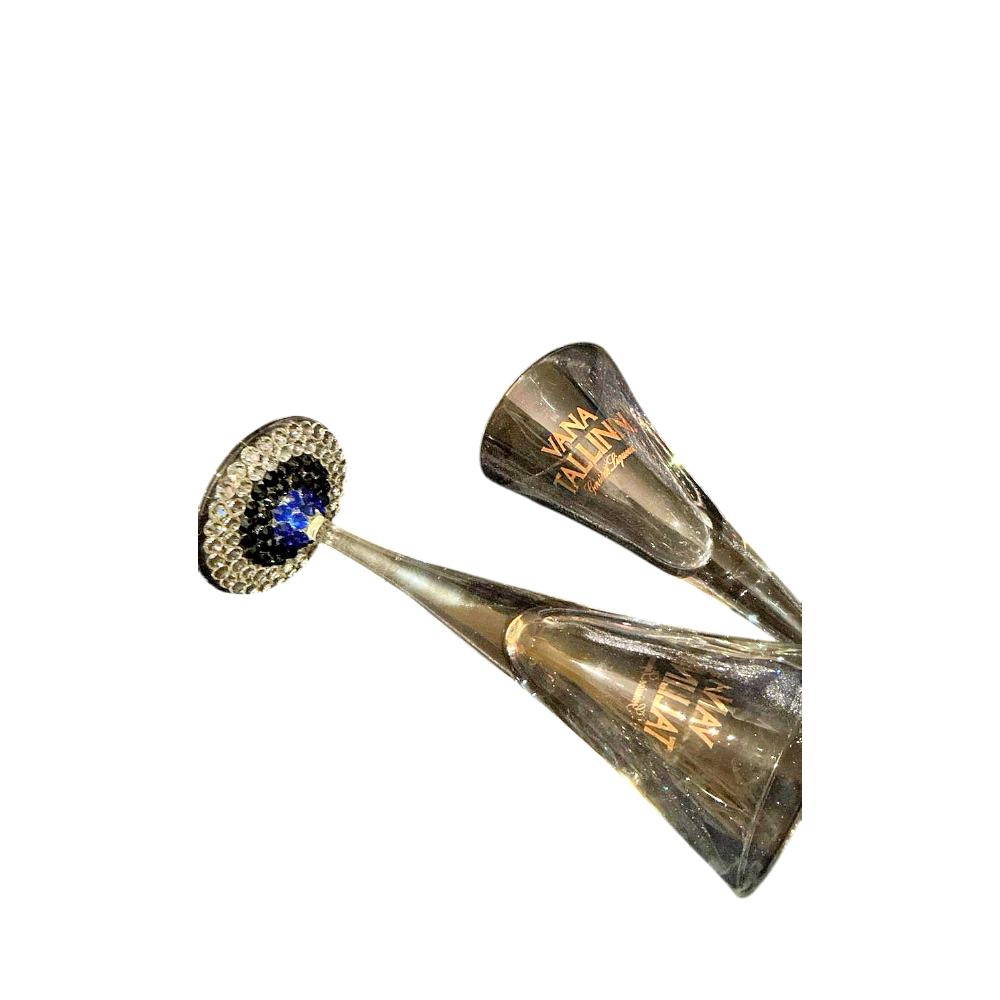 Set of two elegant shotglasses and bottle of liquer Vana Tallinn.