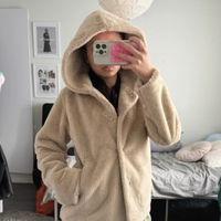 Beige hooded fluffy jacket
