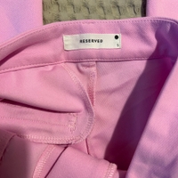 Hyväkuntoiset vaaleanpunaiset housut koossa S. Pieni jälki, joka näkyy viimeisessä kuvassa. Ei ole yritetty poistaa.