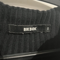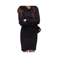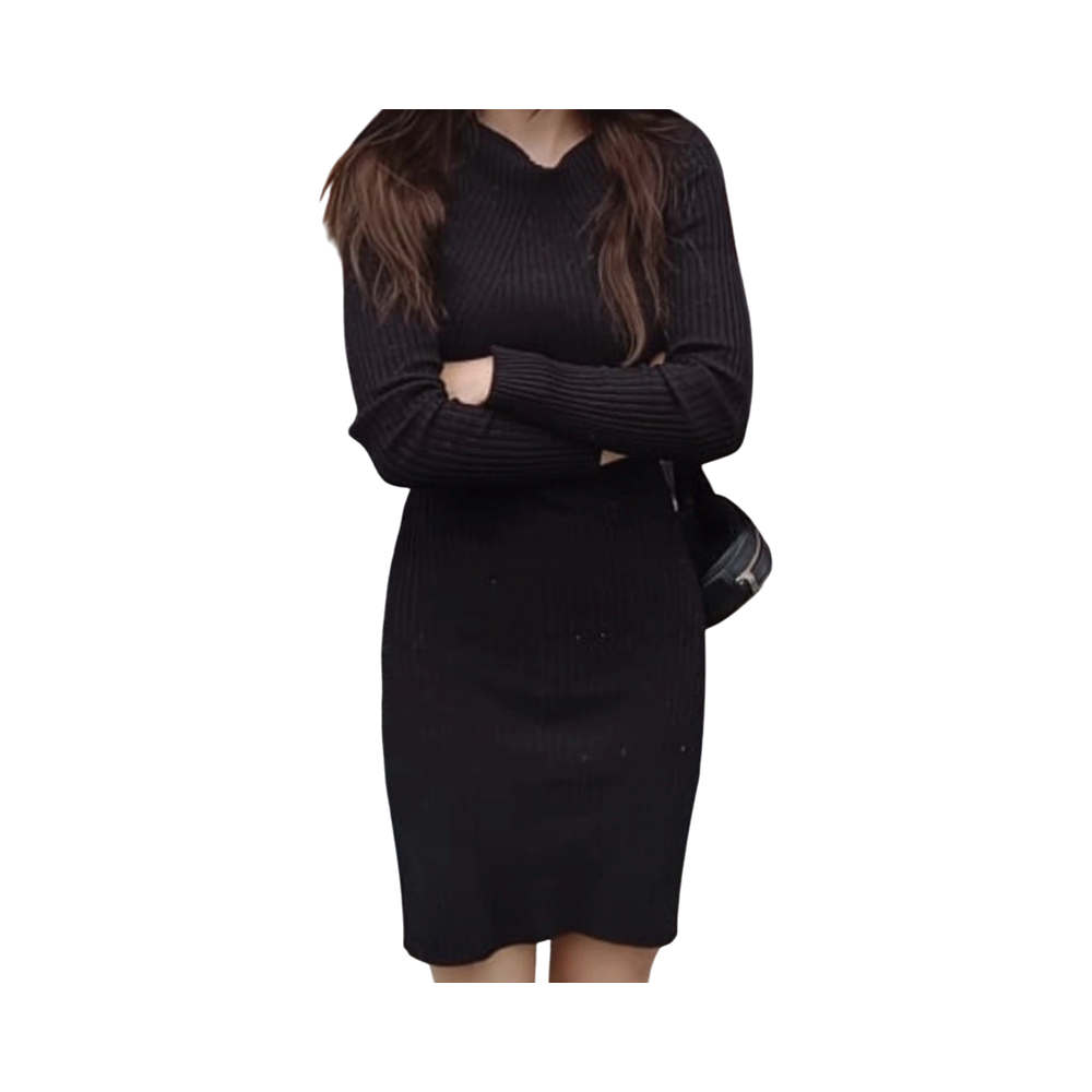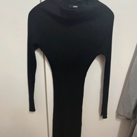 Musta, vartalonmyötäinen ribbineulemekko pitkähihaisena.