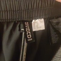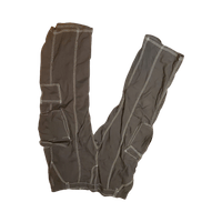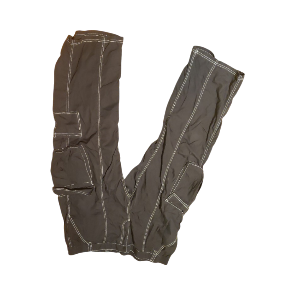 Cargo-tyyliset housut, valkoiset kontrastisaumat.