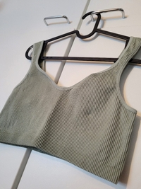 Pastellinvihreän sävyinen croptop.