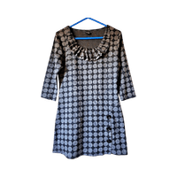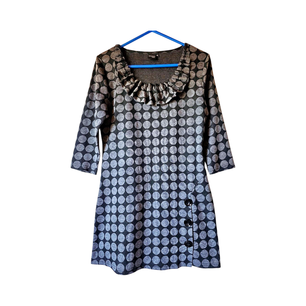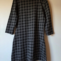 A-linjainen trikoomekko harmailla palloilla, 3/4-hihat, sivunapit