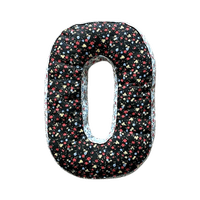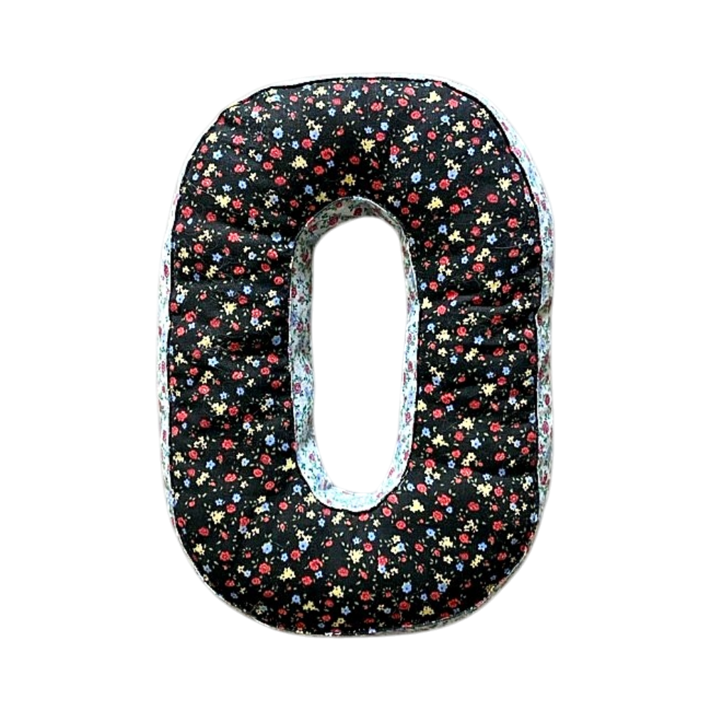O-kirjaimen mallinen koristetyyny. Itse tehty. Korkeus n. 30 cm.