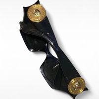 Black cat eye sunglasses with gold-tone emblem accents. Model number 4450. Includes original case.