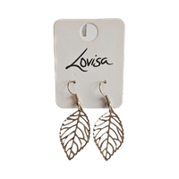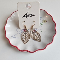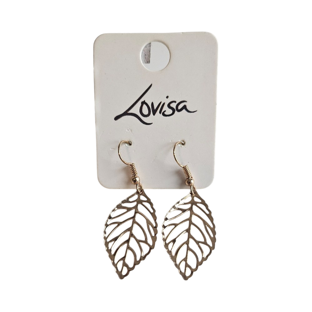 Delicate gold-tone leaf dangle earrings, lightweight everyday accessory.