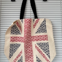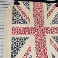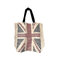 Uusi ja käyttämätön kangaskassi, jossa Union Jack / Union flag -lippua mukaileva koristeellinen kuvio. Materiaali on 100% puuvillaa. Merkki Atmosphere (Primark). Savuton koti, ei lemmikkejä.
