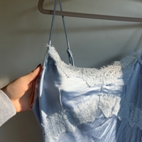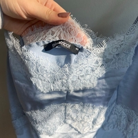 Kaunis satiininen menko, jossa pitsiä. Lähes käyttämätön! Minimittainen.