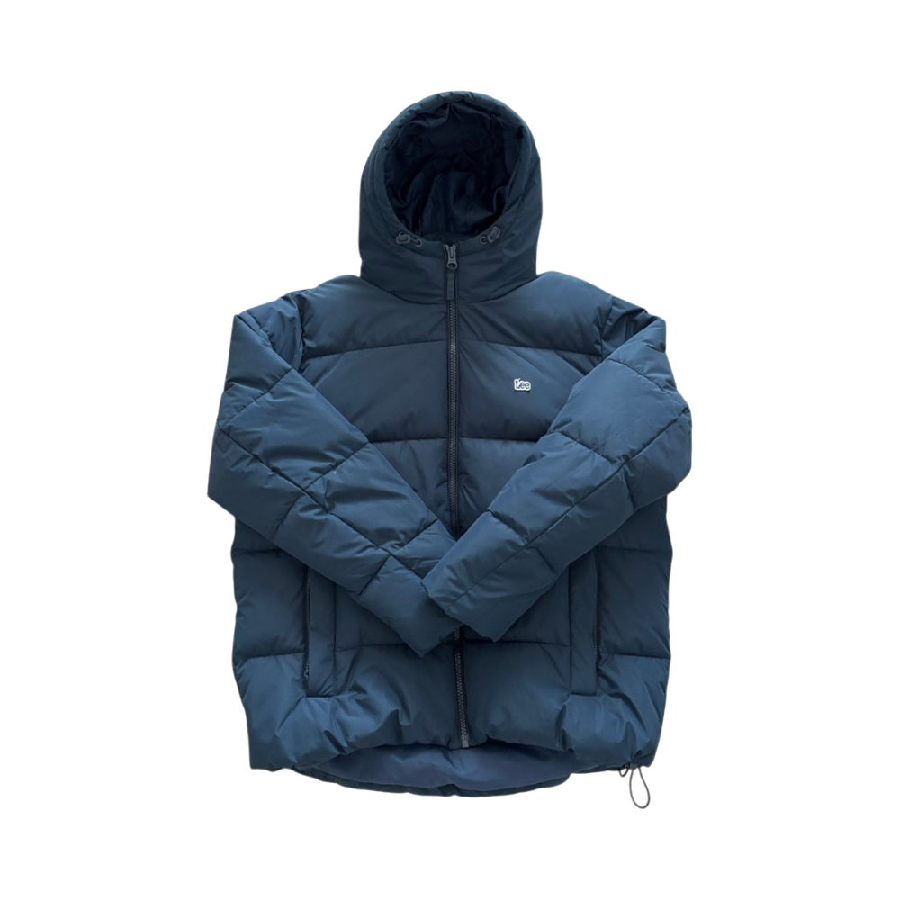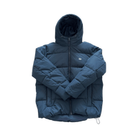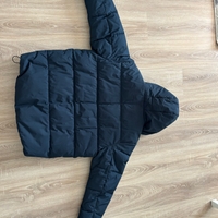 Tummansininen miesten toppatakki hupulla, koko XL.