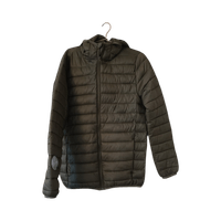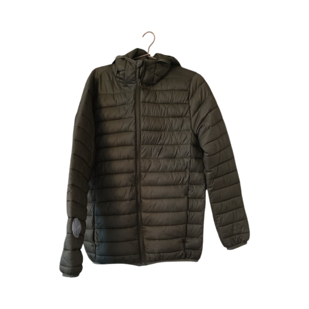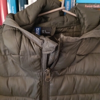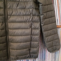 Kevyt, tikattu toppatakki hupulla, sisätasku, hyväkuntoinen.