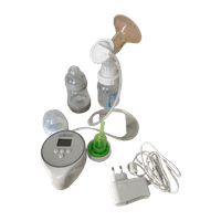 Täysin käyttämätön rintapumppu. Mukana kaksi tuttipulloa toinen koliikkia ehkäisevä.