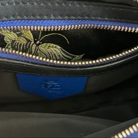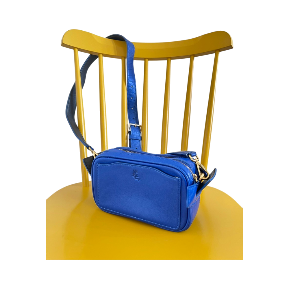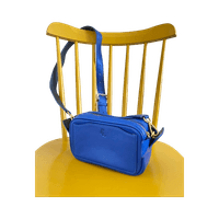 Sininen nahkainen olkalaukku