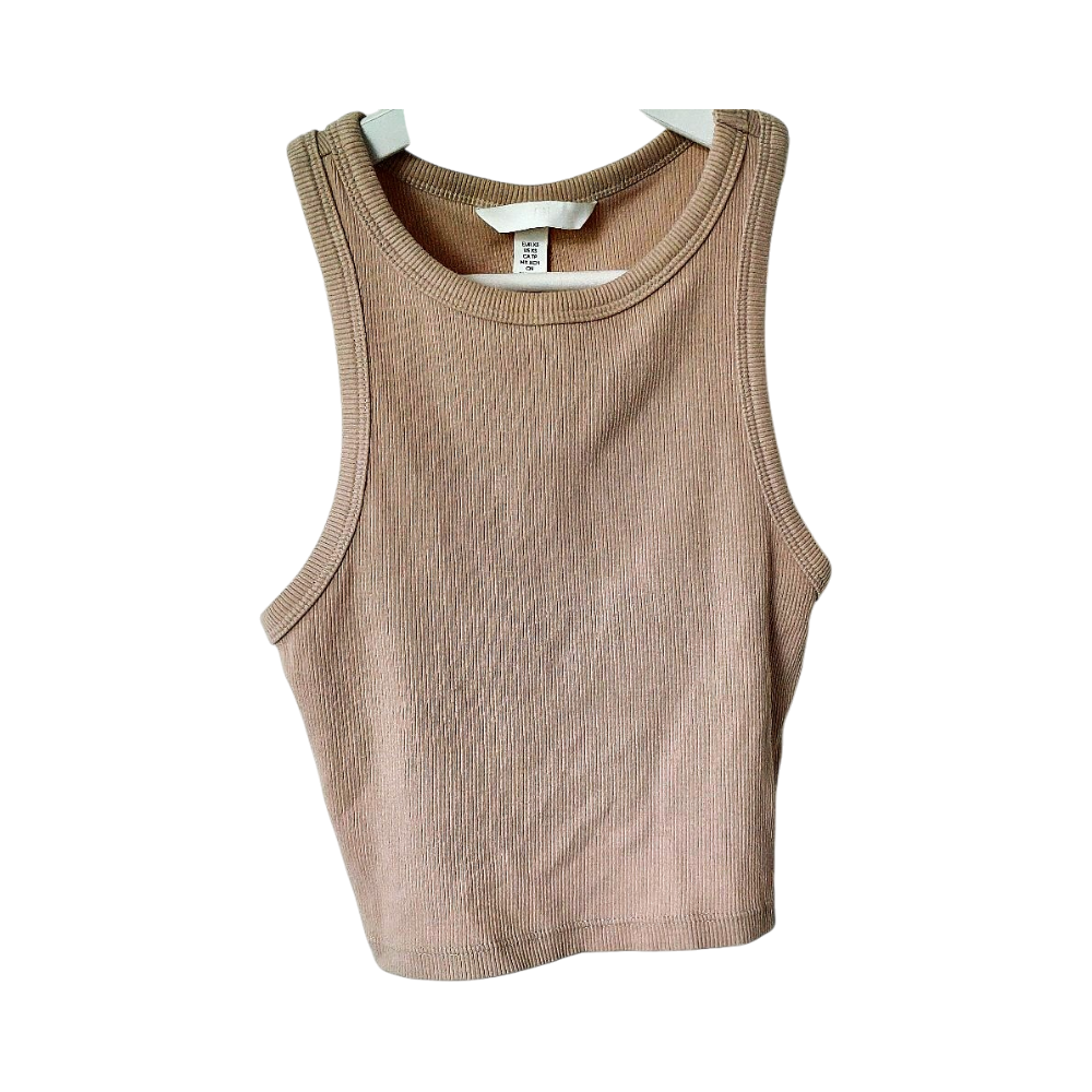 Beige ribattu crop toppi, koko XS, 96% puuvillaa, 4% elastaania.