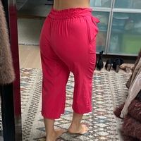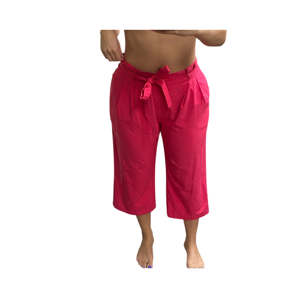 Cropped pink pants with an attached string on the waist. Very comfortable and stretchy.