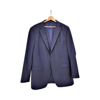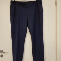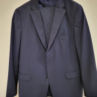 Takin mitat kainalo-kainalo 58cm, etupituus hartian korkeimmalta kohdalta 77cm. Housujen vyötärö 47cm ja lahkeen sisäpituus 76cm. Vasemman lahkeen takaosassa polvitaipeessa pieni (0,5cm halkaisija) langanveto jota ei käytössä huomaa lainkaan. Tästä laadukas ja istuva puku seuraavalle käyttäjälle!