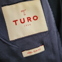 Myydään hyvässä kunnossa oleva tummansininen Turo Tailorin Colin extra slim fit -puku kokoa 56.