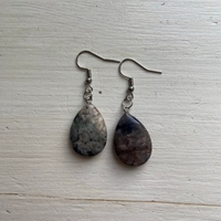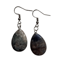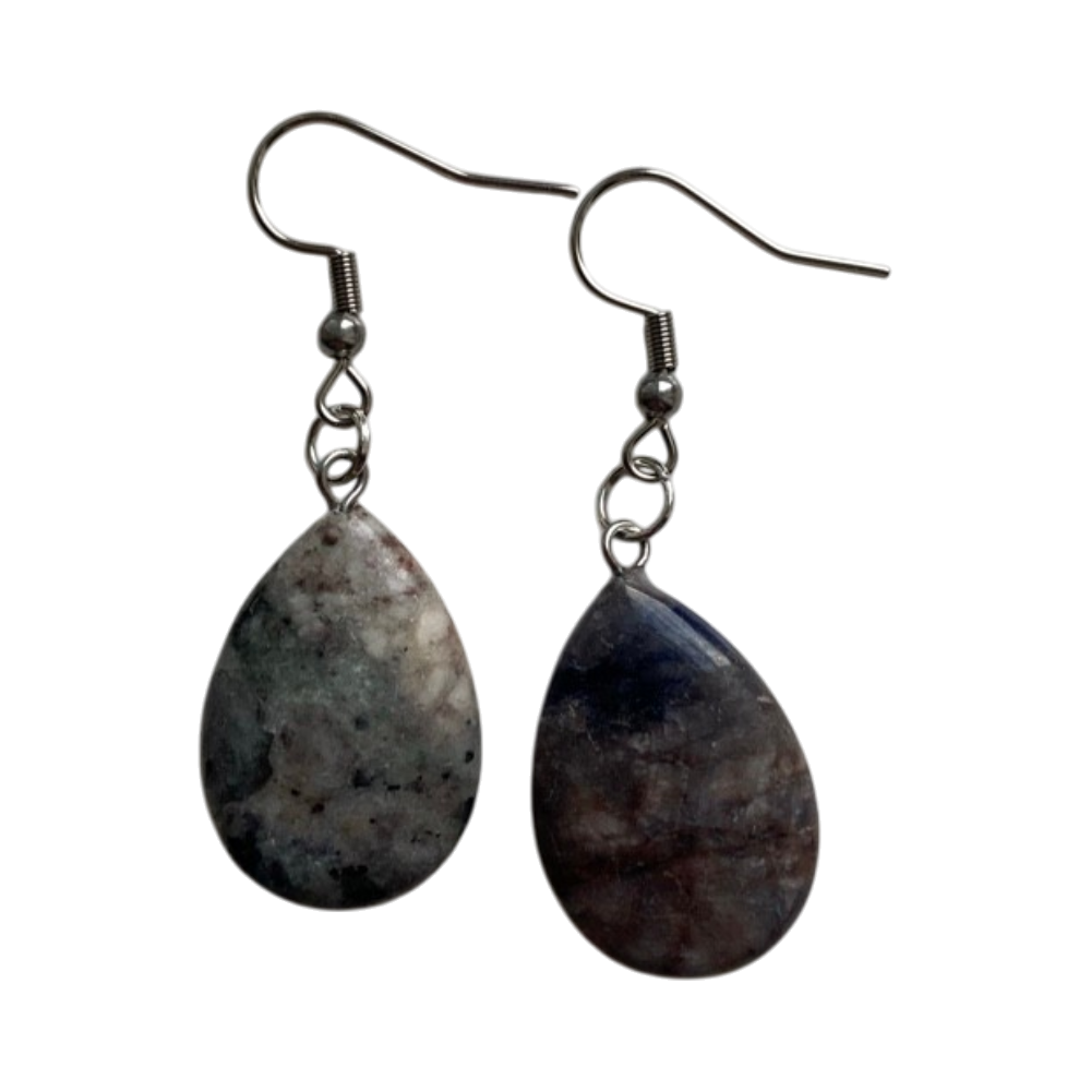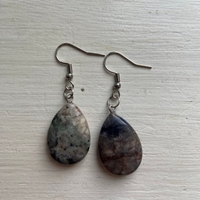 Kauniit korvakorut harmaansinisillö pisaranmuotoisilla kivillä