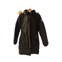 Käytetty, mutta edelleen hyvässä kunnossa. Takki on kerran pesetetty ohjeiden mukaan pesulassa, mutta siitä lähti hieman väriä joidenkin saumojen kohdalta (kuten kahdessa vikassa kuvassa näkyy), tämä ei kuitenkaan näy pahasti käytössä. Takki on ostettu Canada Goosen liikkeestä 2019, ja käytetty parin talven ajan, jonka jälkeen ollut kaapissa liian pieneksi jäämisen jälkeen. Myyn halvalla, koska otan hinnassa värin pienen haalenemisen huomioon ja haluan saada takin myytyä pois ennen muuttoa😅 Takissa on pieniä käytön jälkiä.