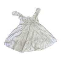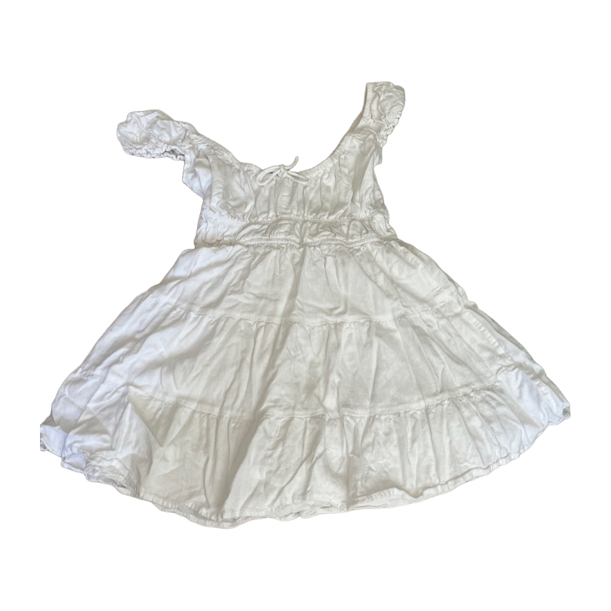 Valkoinen lyhyt kesämekko, joustavat hihat, rento malli.
