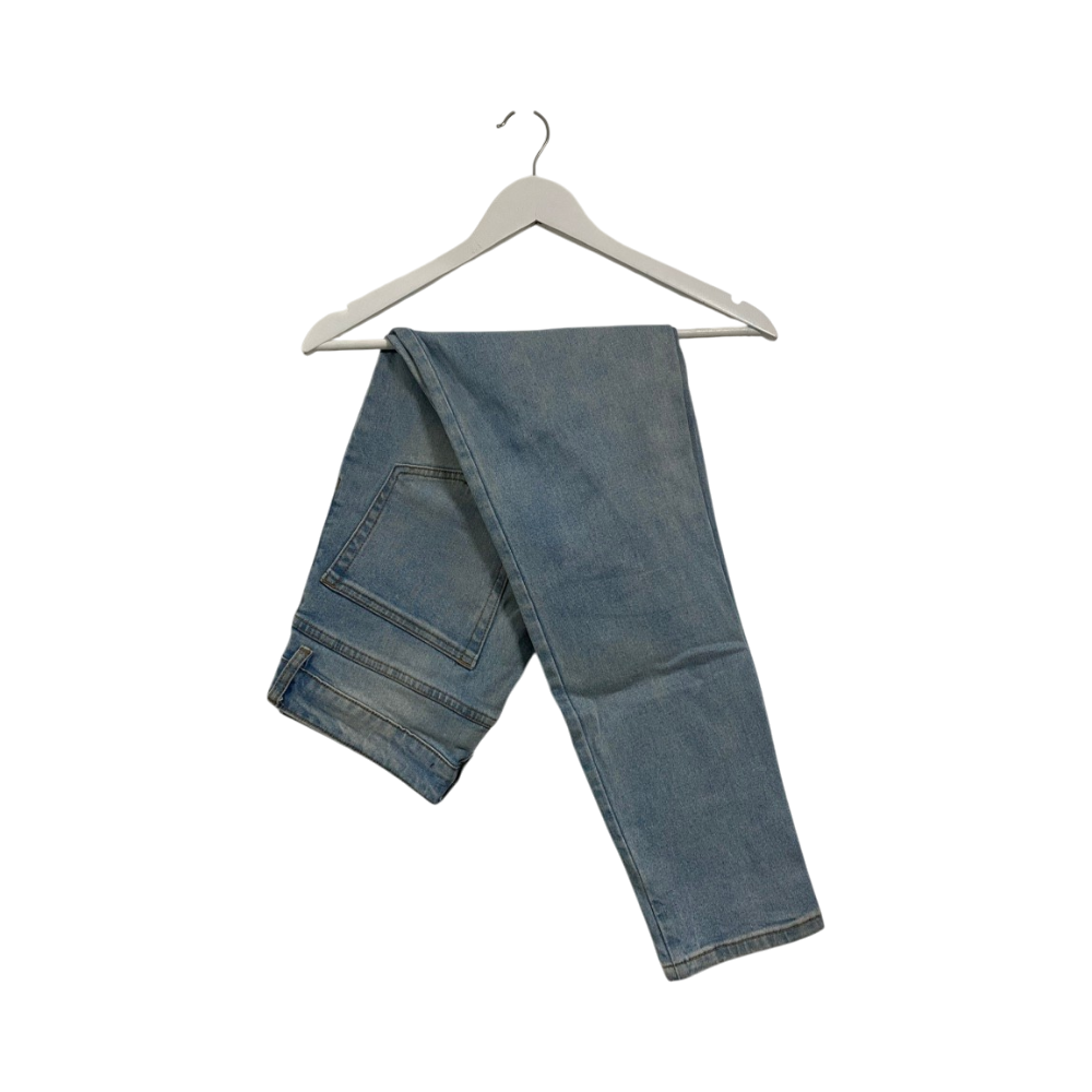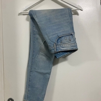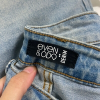 Vaaleansiniset korkeavyötäröiset farkut, tappered slim fit malli, merkki Even&Odd. Koko 36, pituus 101 cm, vyötärön ympärysmitta noin 74 cm. Hyvä käytetty kunto.