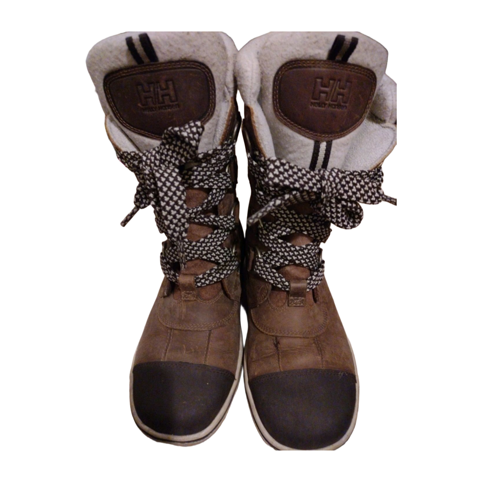 Käytön jälkiä on, vasemmassa kengässä pieni langanpako joka ei haittaa käyttöä. Vettä pitävät. #hellyhansen #talvikengät