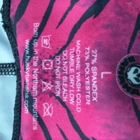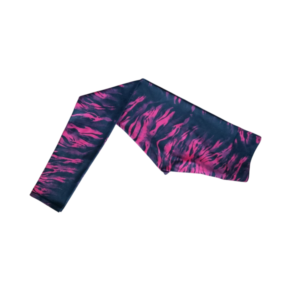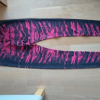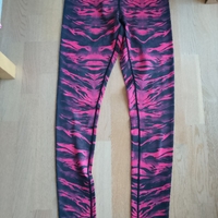 Stretchy high-waist activewear leggings, bold pink northern lights print. Materials: spandex ,polyester