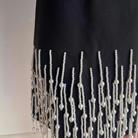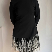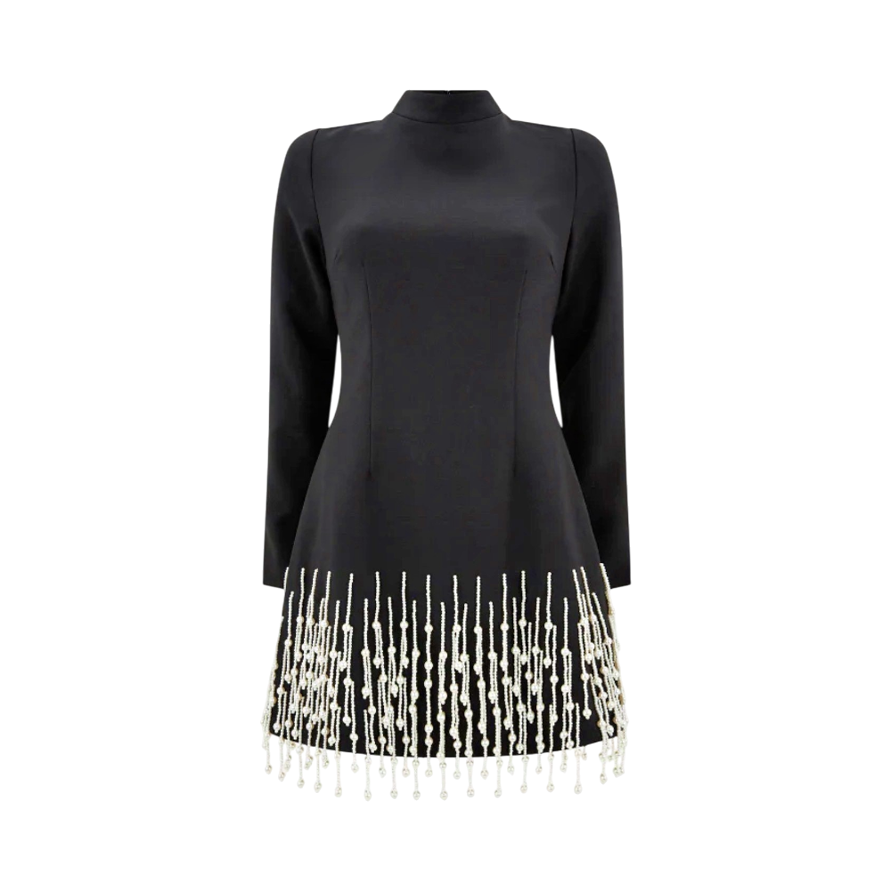 Make the ultimate statement this party season with the Ultimate Muse Pearl Drop Dress. Delicate pearl embellishments adorn the hem, adding a touch of opulence and sophistication to your winter wardrobe.
