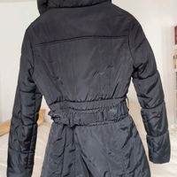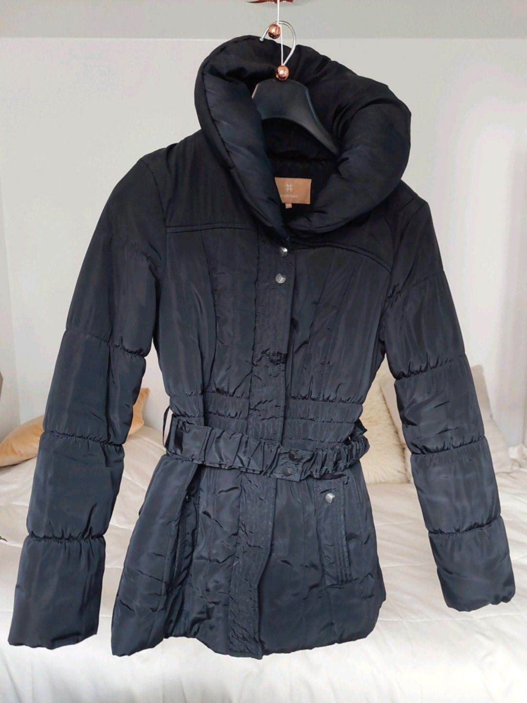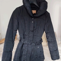 Nätti talvitakki/tikkitakki vyöllä. Vyön saa irti, syvät taskut, kauluksen saa nostettua korkealle, ei huppua. Vetoketju&nappikiinnitys. Väljä S koko.