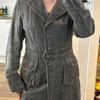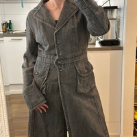 Pitkä vintage puuvilla pellava sekoite takki, vuorillinen, koko 38. Sisävuorea on korjattu, näkyy kuvissa. Todella kehyt.