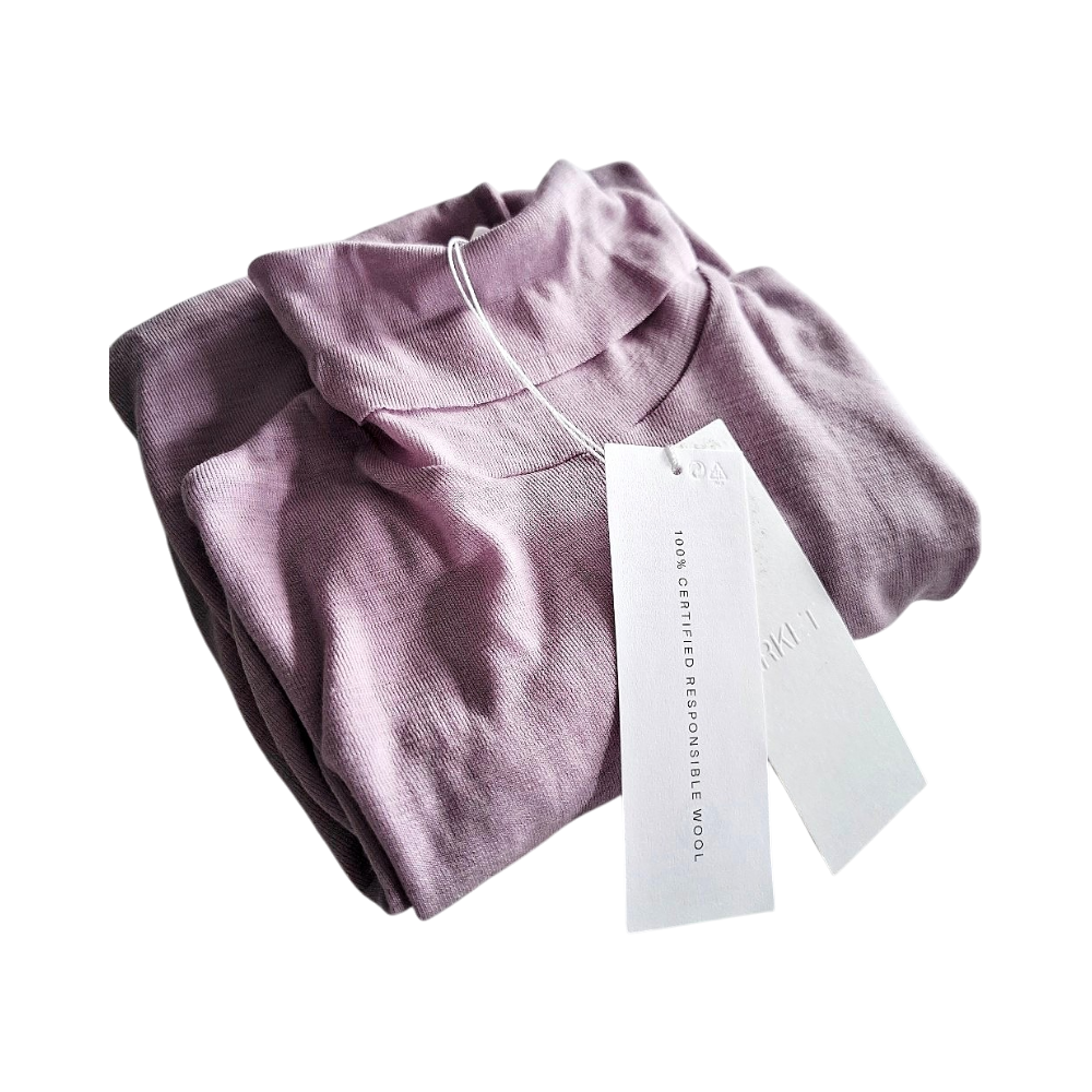 Aivan ihana materiaali: erittäin joustavaa, hiostamatonta, kutiamatonta, luonnollisen lämmintä ja hengittävää, hieman läpikuultavaa, mukavaa 100% villaa. Erinomainen kerrospukeutumiseen!