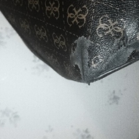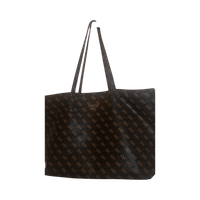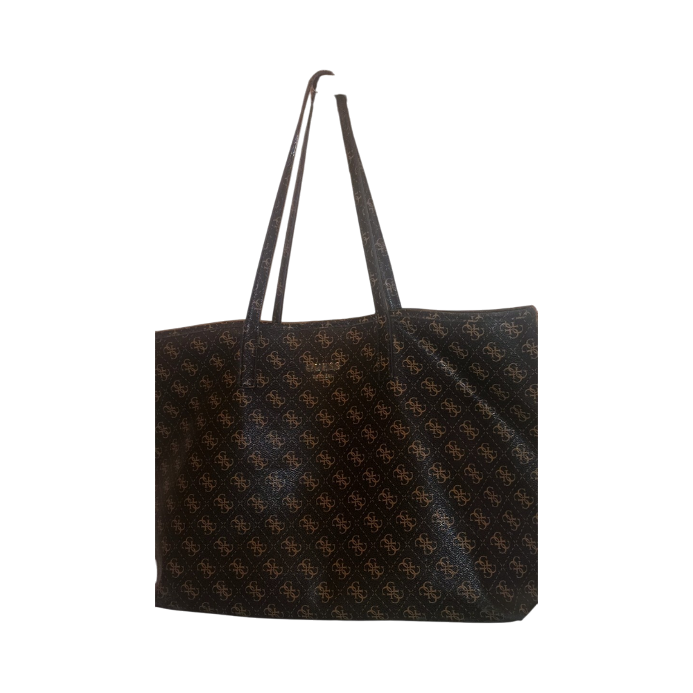Tilava iso kuviollinen shopper-laukku, ehjä vaikka kulmassa ja olkahihnassa jo käytön jälkiä ja kulumaa.